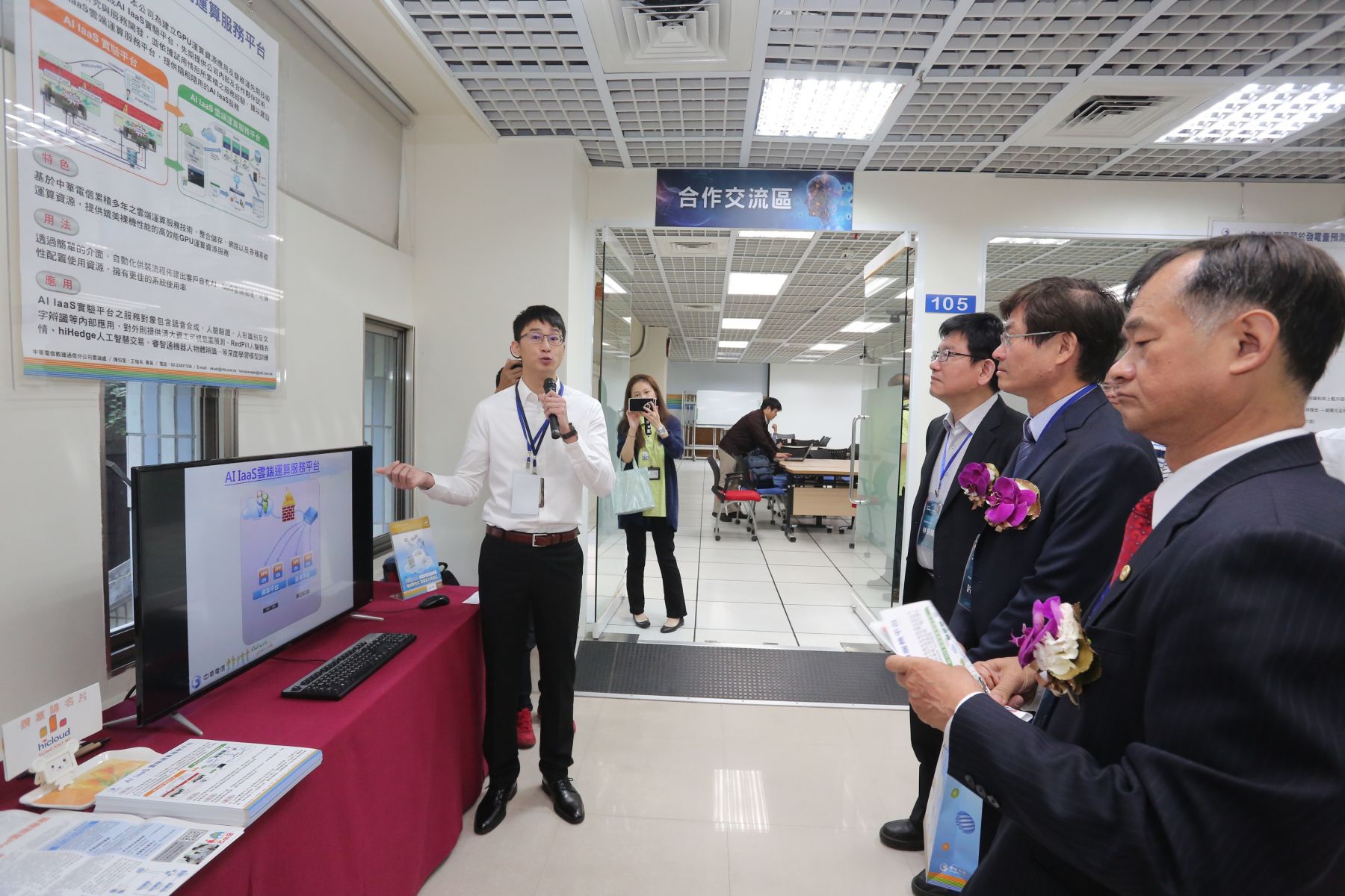 (右到左)中華電信學院院長蔡正雄、行政院政務委員吳政忠、 中華電信總經理謝繼茂、中華電信研究院院長林榮賜